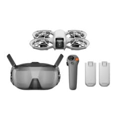 Complete Fly More Combo: Includes DJI Neo Motion drone , RC Motion 3 controller , DJI FPV goggles extra battery charging hub , spare propellers & a durable carrying case.